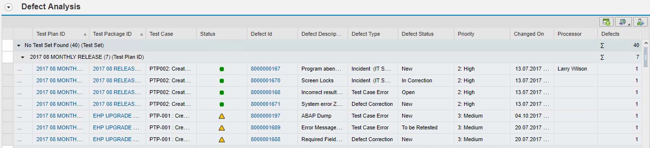 Testers create Test Suite Defects during test execution. The standard workflow process for defects is integrated with ITSM.